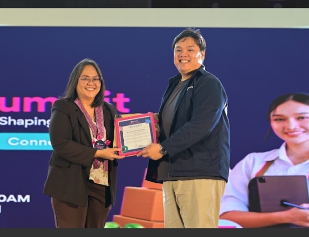 Ms. Arlynne Roa-Awayan of Asia Pacific College accepts her Plaque of Appreciation from Mr. Henry Jose “Joey” Yusingco of Jobstreet (right) by Seek Country Marketing head.
