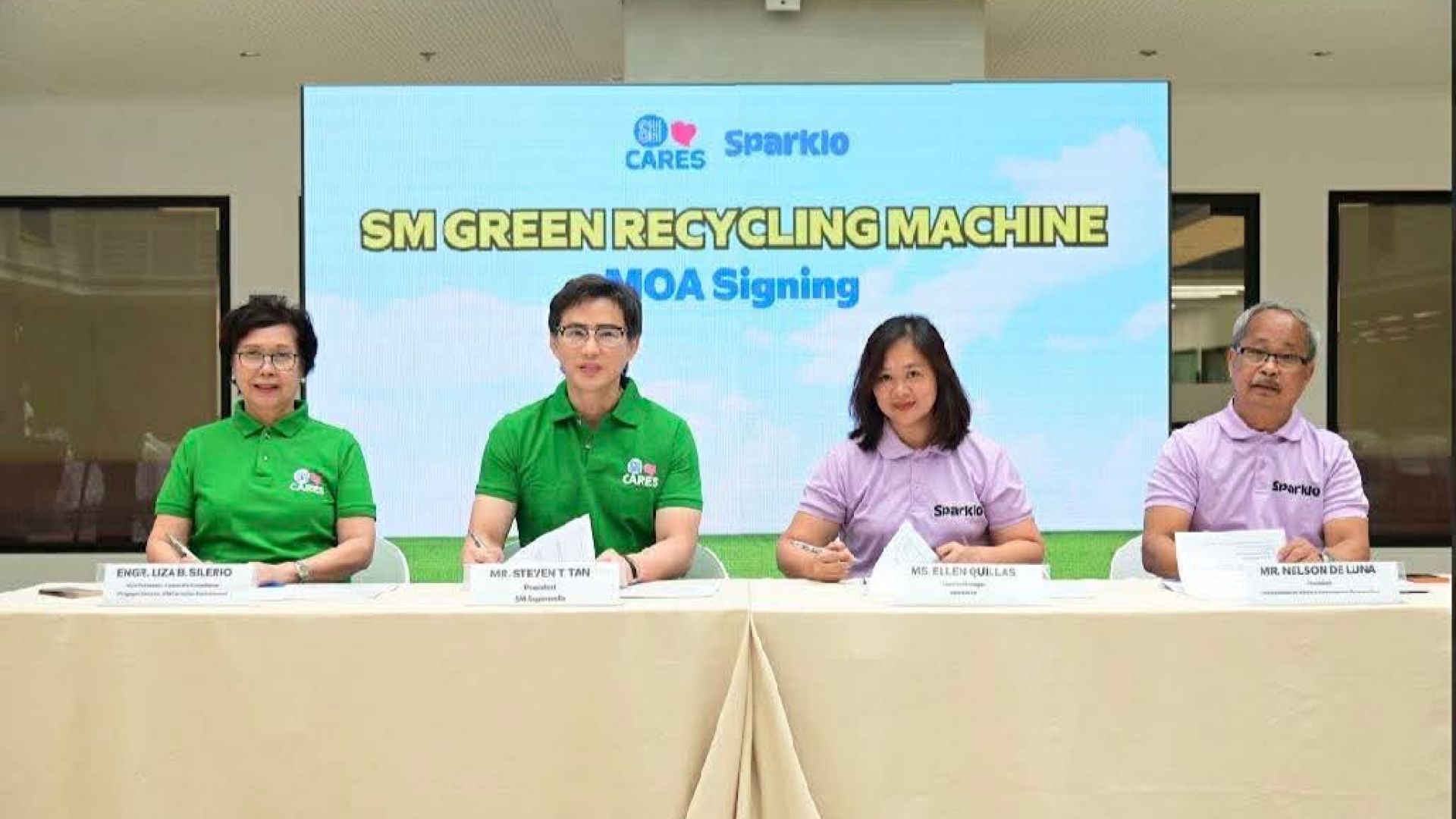 SM Supermalls and Sparklo executives formalize their partnership during the official launch of Sparklo’s reverse vending machines in the Philippines, expanding the SM Green Recycling Machine program under the SM Green Movement.